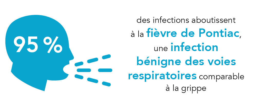 L'émergence récente de cette maladie s'explique par son affinité pour les systèmes modernes d'alimentation en eau comme les réseaux d'eau chaude sanitaire, les tours de refroidissement, les bains à jet, les bains à remous (jacuzzi), etc.